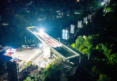 西渝高鐵康渝段梅花坪臨溪河特大橋T構實現毫米級精準轉體